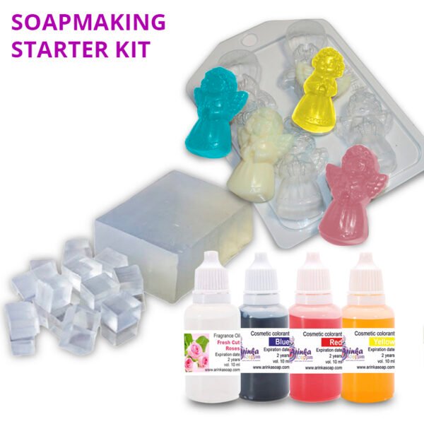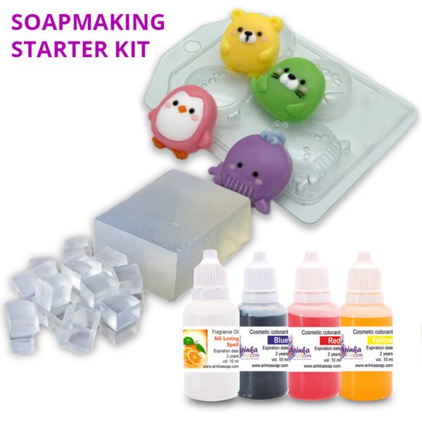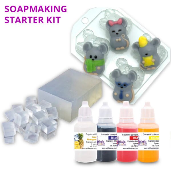 Beginners basispaket, bevat alle nodige materialen en een gebruiksaanwijzing om met gietzeep te leren werken.
